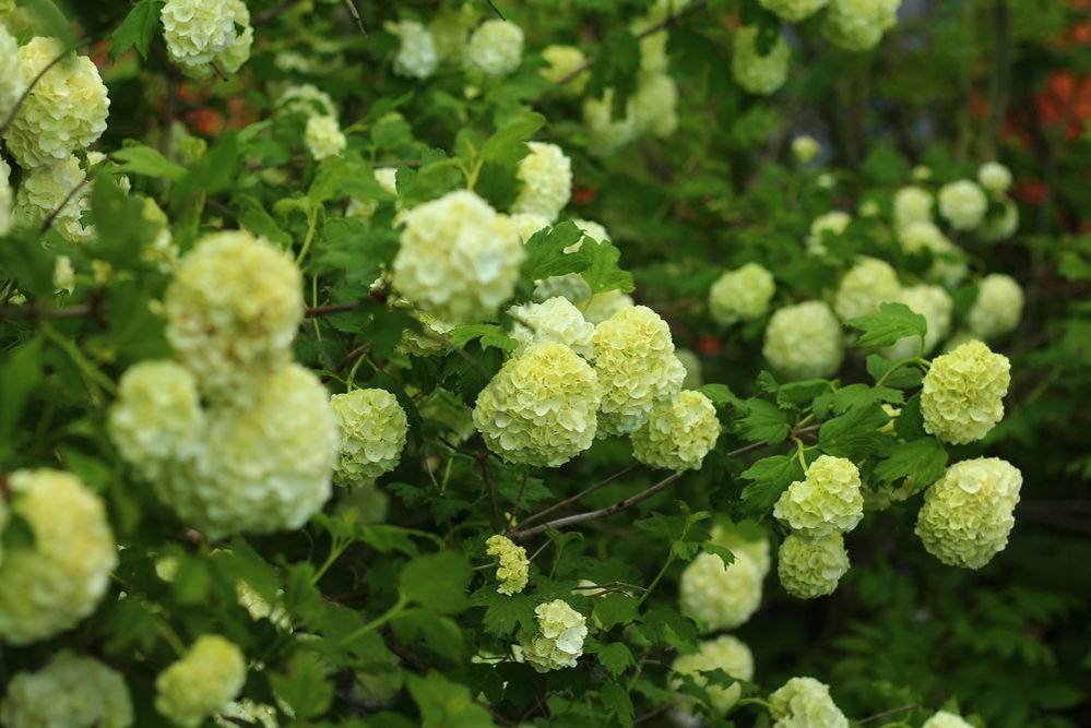 Мўл-кўл гуллаш ва қорли оқ гуллар билан классик Калина